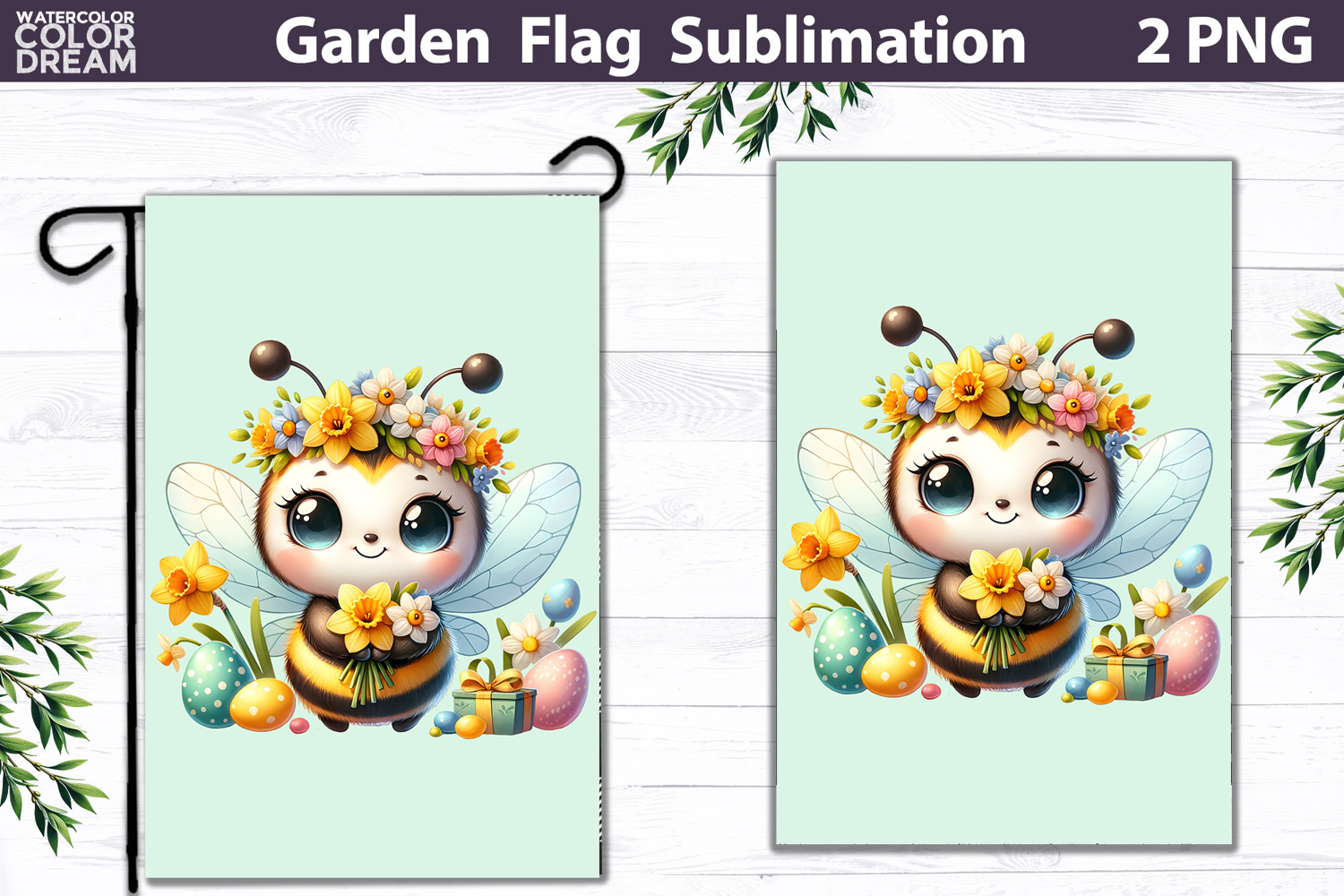 Easter Bee Garden Flag | Spring Floral Sublimation example image 1