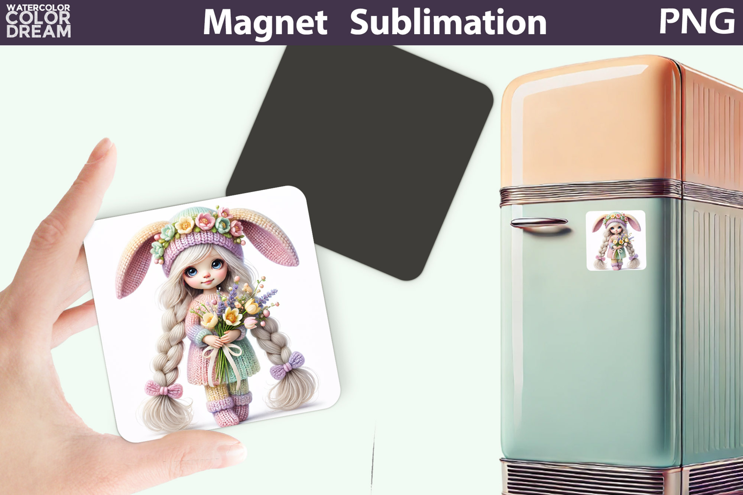 Floral Bunny Girl Magnet | Easter Sublimation example image 1