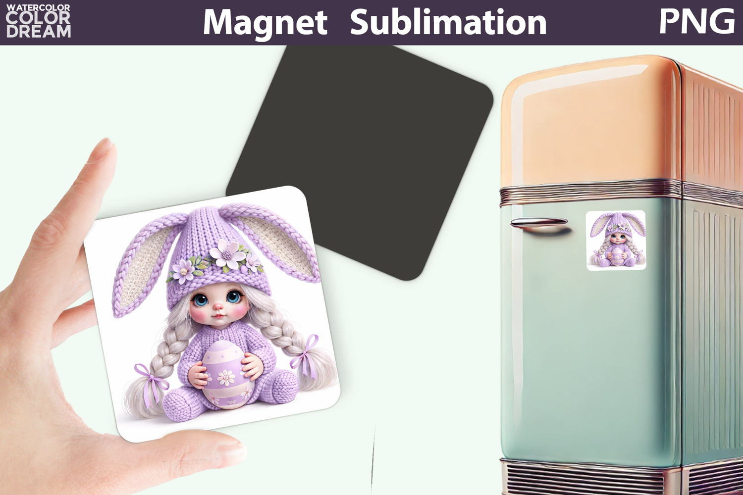 Lavender Easter Bunny Girl Magnet | Spring Sublimation example image 1