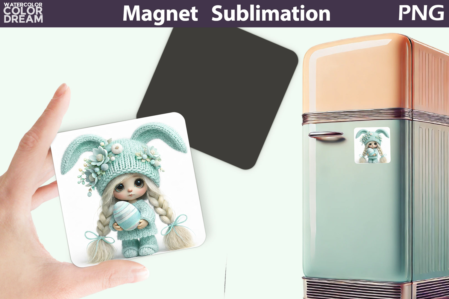Mint Easter Bunny Girl Magnet | Spring Sublimation example image 1