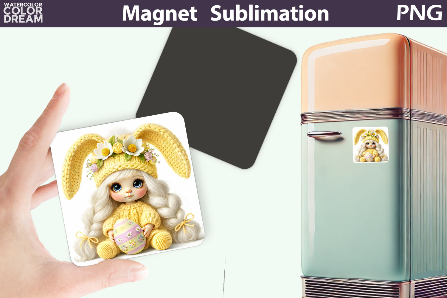 Yellow Easter Bunny Girl Magnet | Spring Sublimation example image 1