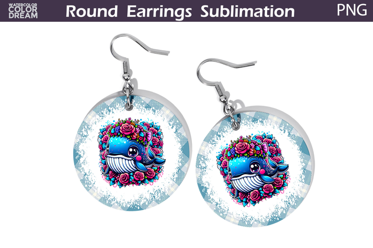 Whale Earrings Round Earrings Whale Earrings Animal Floral Round Earrings Spring Animal Floral Earrings Mothers Day Animal Floral Earrings Whale Flowers Round Earrings Whale Pink Flowers Roses Earrings Cute Whale Roses Round Earrings Sublimation