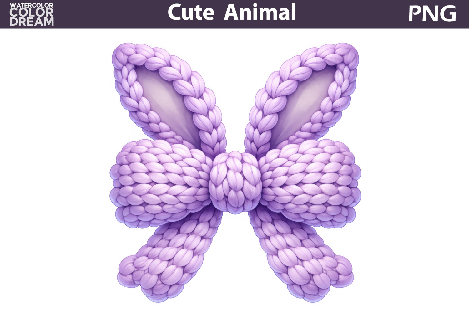 Pillow Coaster T Shirt Mug Tumbler Tote Bag Poster Pastel Knitted Ribbon Sublimation Design Cute Spring Bow Illustration Bunny Ears Hair Bow Graphic Easter Shirt Design Element Cozy Yarn Texture Ribbon Art Pastel Holiday Bow Decor Spring Nursery Clipart Design Adorable Easter Ribbon Illustration Purple Easter Bunny Bow Clipart