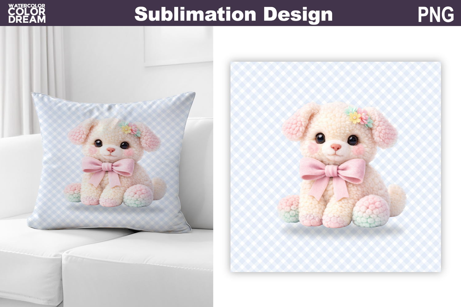 Cute Pastel Puppy Pillow | Nursery Sublimation