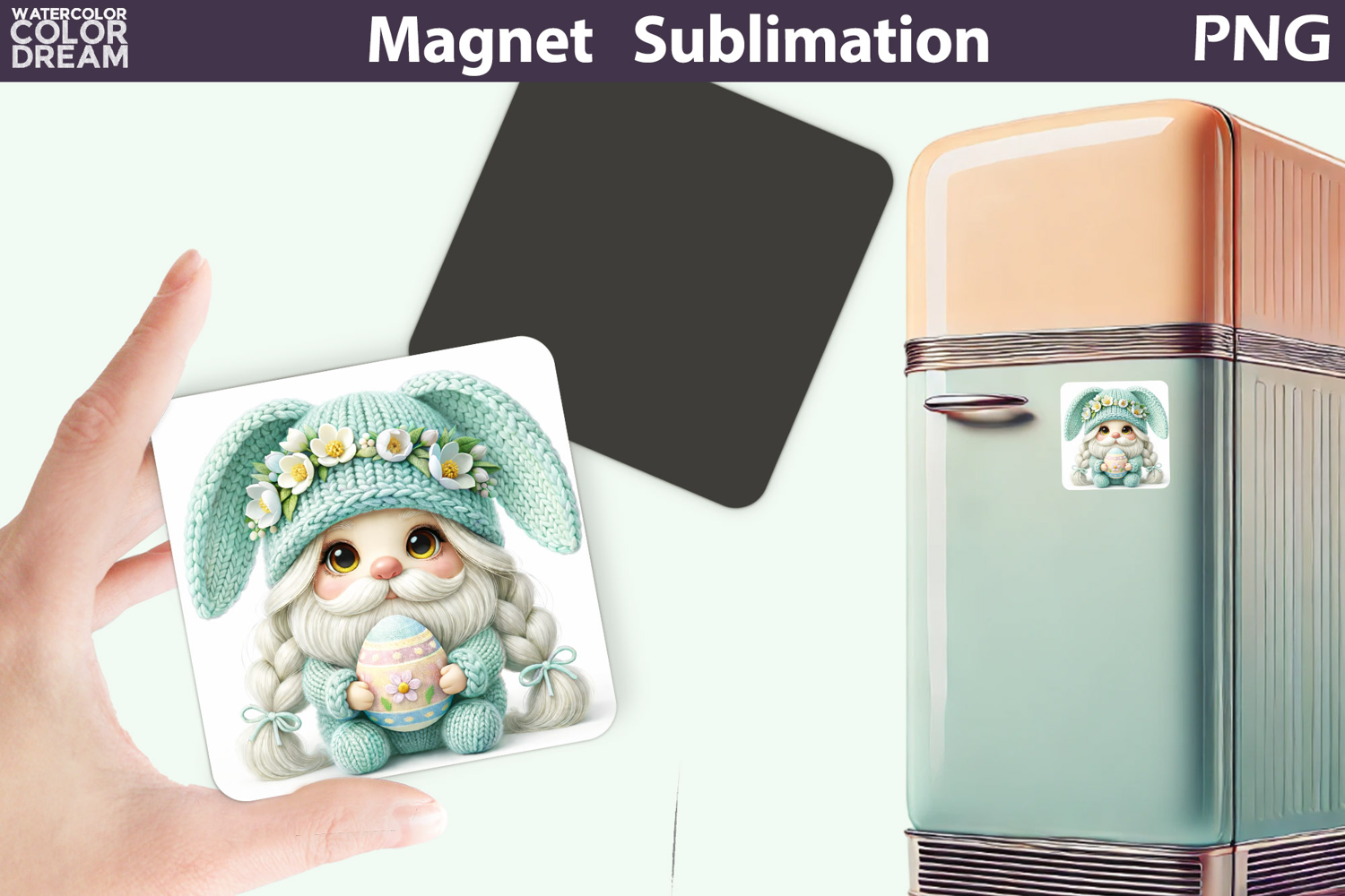 Cute Gnome Sublimation Gnome Kitchen Décor Easter Gnome Magnet Design Square Keychain Coaster Magnet Card Kitchen Decor Spring Bunny Hat Gnome Spring Cottagecore Illustration Gnome Easter Egg Illustration Gnome Mint Pastel Spring Magnet Adorable Gnome Bunny Ears Easter Artwork Holiday Gnome Magnet Design
