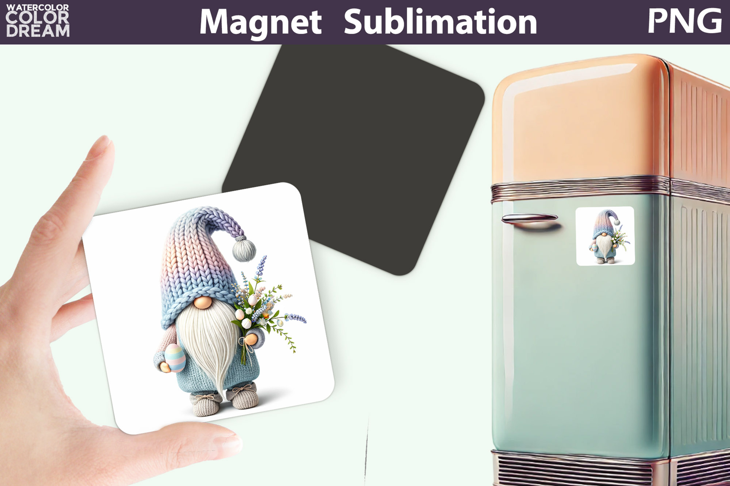 Cute Gnome Sublimation Gnome Kitchen Décor Easter Gnome Magnet Design Square Keychain Coaster Magnet Card Kitchen Decor Spring Bunny Hat Gnome Spring Cottagecore Illustration Gnome Easter Egg Illustration Gnome Mint Pastel Spring Magnet Adorable Gnome Bunny Ears Easter Artwork Holiday Gnome Magnet Design