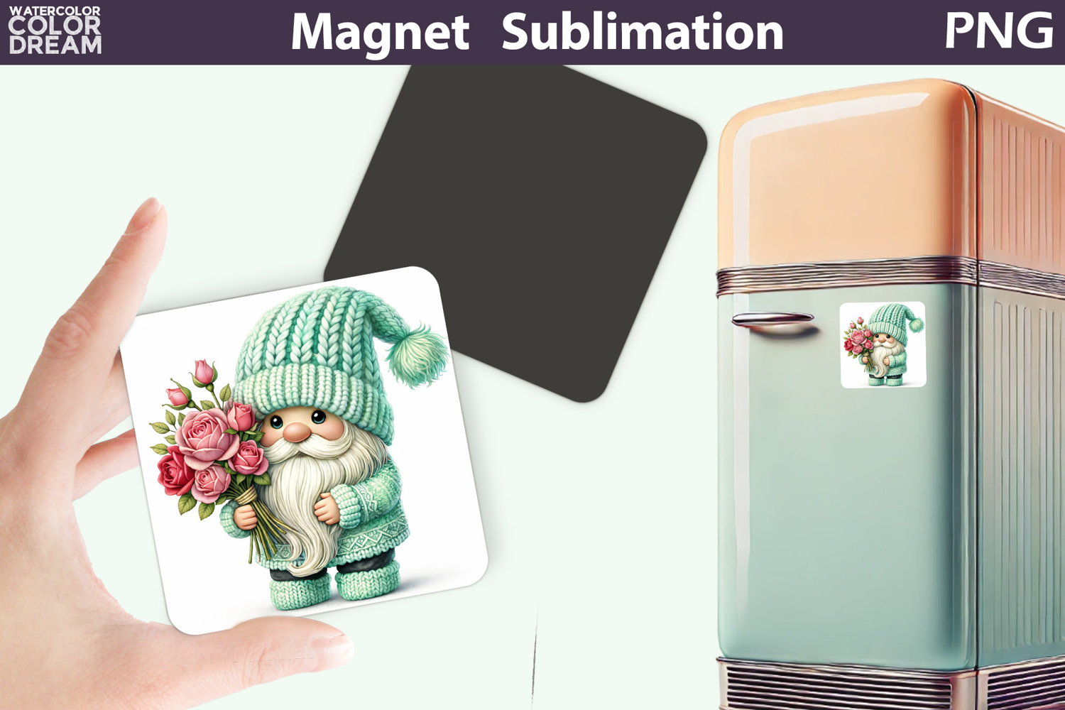 Gnome Floral Gnome Sublimation Design Square Keychain Coaster Magnet Card Kitchen Decor Rose Bouquet Gnome Mothers Day Magnet Gnome Spring Flower Magnet Mothers Day Birthday Romantic Cottagecore Gnome Art Holiday Fridge Deco Gnome Whimsical Floral Magnet Design Kitchen Spring Decor Printable Mint Spring Gnome Magnet Mint Knitted Hat Gnome