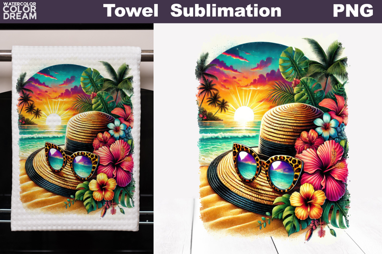 Tropical Beach Hat Kitchen Sublimation | Summer Tea Towel example image 1