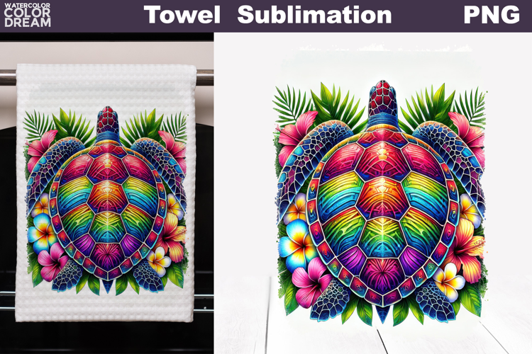 Towel Tropical Tea Towel Coastal Design Rainbow Turtle Kitchen Towel Sublimation Colorful Sea Turtle Artwork Vibrant Island Floral Illustration Beach House Kitchen Decor Design Marine Life Summer Textile Print Exotic Ocean Animal Graphic Bold Tropical Kitchen Accessory Design Seaside Home Decor Artwork