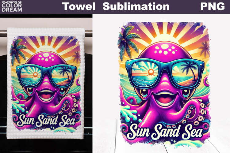 Towel Colorful Summer Ocean Design Coastal Kitchen Decor Graphic Sun Sand Sea Kitchen Towel Sublimation Summer Octopus Tea Towel Design Tropical Sunglasses Beach Artwork Playful Ocean Summer Illustration Beach House Textile Print Design Vibrant Seaside Towel Artwork Tropical Marine Home Accessory