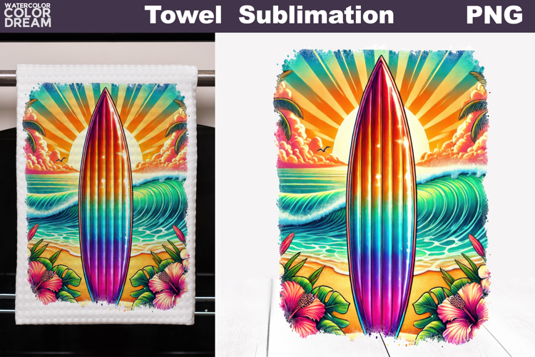 Tropical Surfboard Kitchen Towel Sublimation | Summer Beach example image 1
