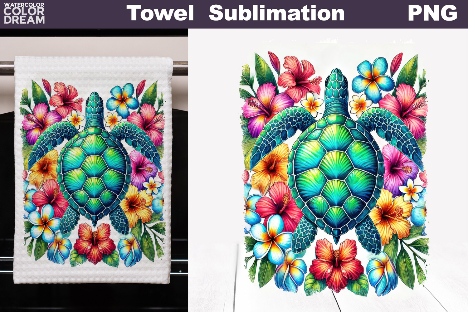 Colorful Turtle Floral Art | Kitchen Towel Sublimation