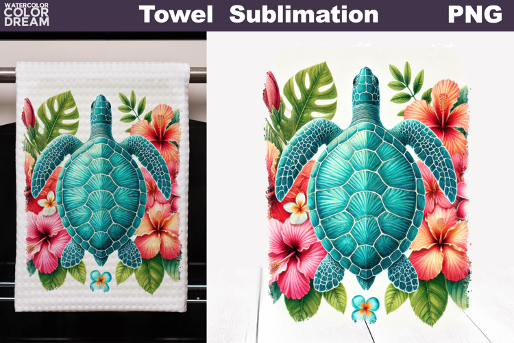 Tropical Turtle Hibiscus Art | Kitchen Towel Sublimation example image 1