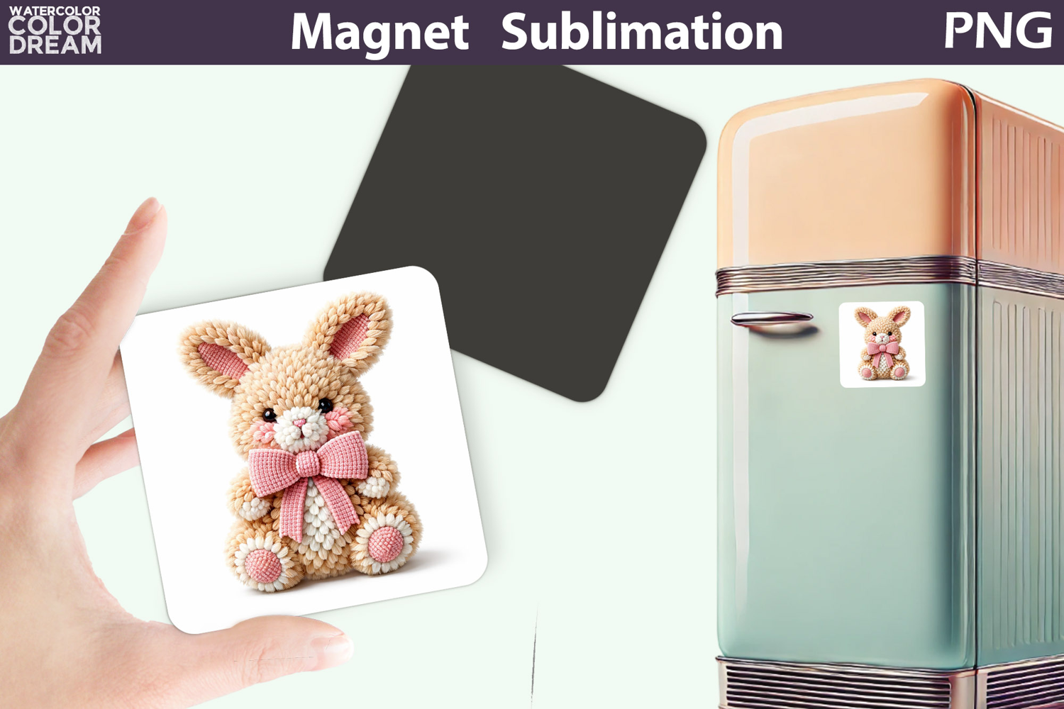 Cute Easter Bunny Magnet Sublimation | Spring PNG example image 1