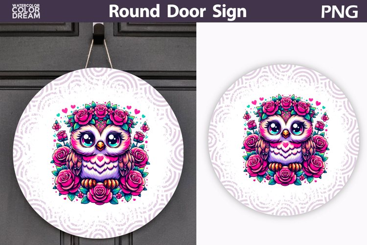 Cute Owl Round Door Sign | Floral Farmhouse Decor example image 1