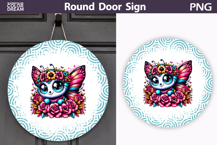 Floral Butterfly Round Door Sign | Teal Porch Decor example image 1