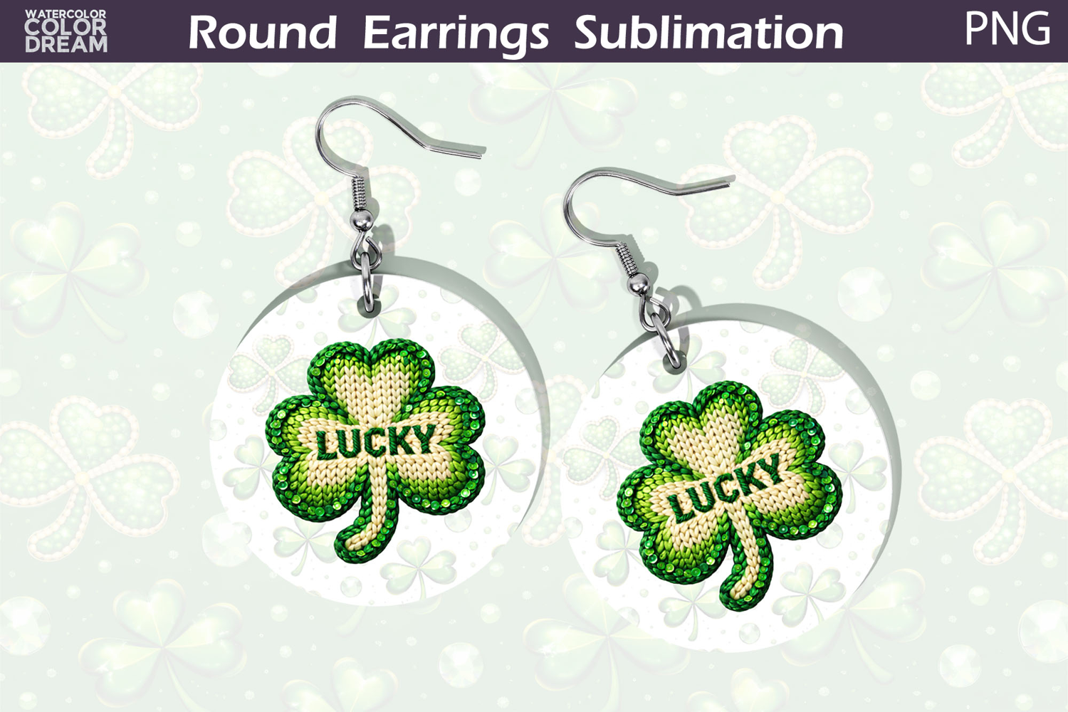 Knit Lucky Clover Round Earrings Sublimation | St Patrick example image 1