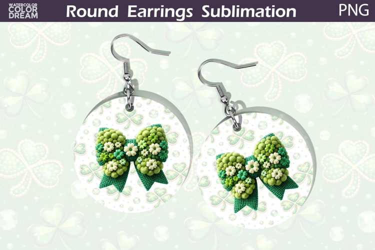 Round Earrings Green Floral Clover Round Earrings Sublimation St Patrick Flower Jewelry Printable Design Shamrock Blossom Accessory Artwork Irish Holiday Botanical Earring Graphic Spring Clover Bouquet Jewelry Template March Festive Handmade Accessory Art Round Pendant Floral Sublimation Design Lucky Charm Flower Jewelry Printable Green Ribbon Floral Shamrock Artwork