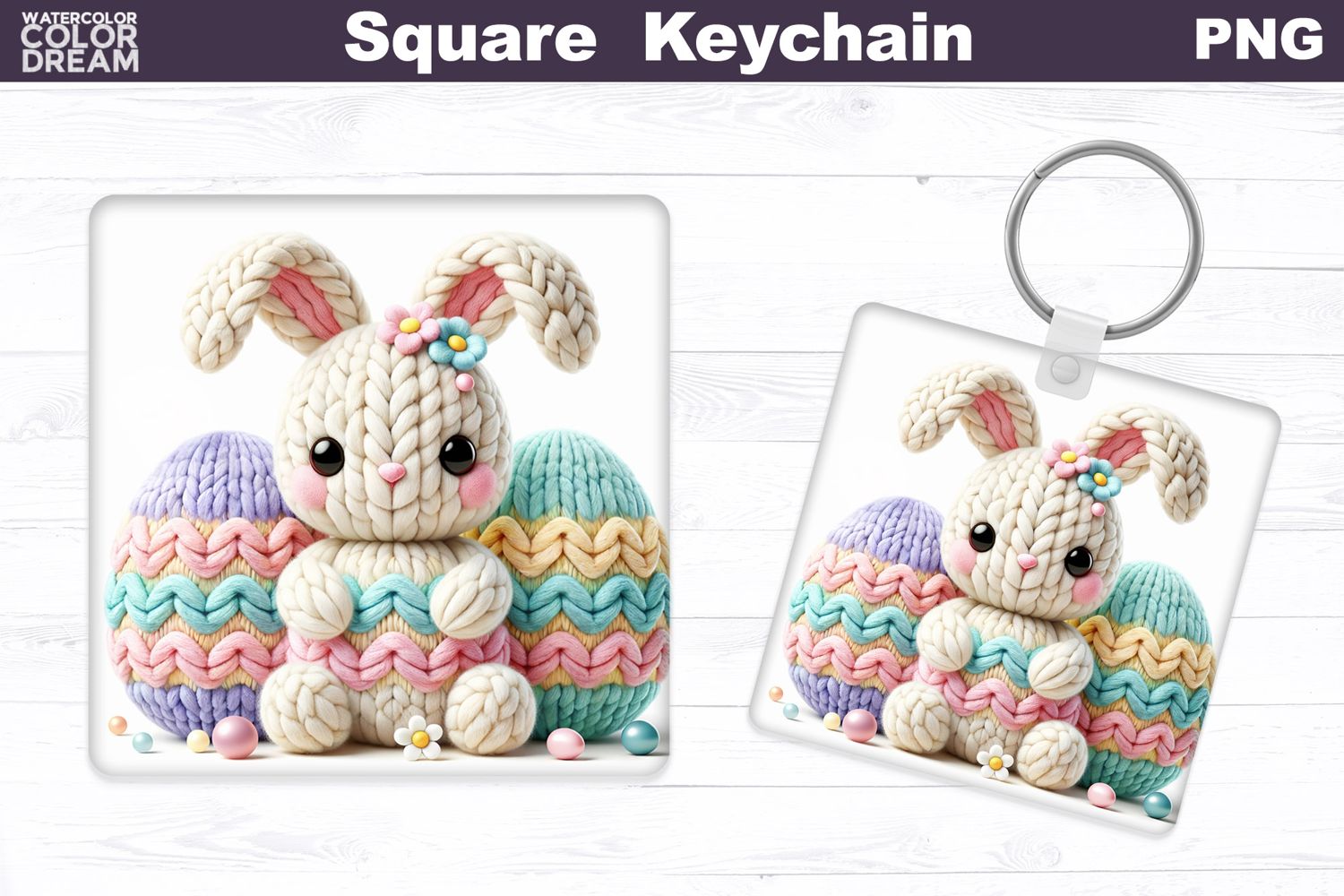 Similar Design Products to Cute Knitted Bunny Square Keychain Sublimation | Easter Baby