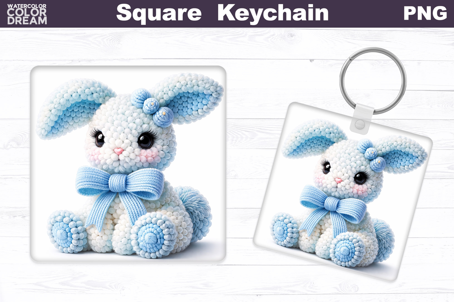 Bunny Square Keychain Square Keychain Coaster Magnet Card Tag Easter Nursery Animal Keyring Cute Pastel Bunny Square Keychain Sublimation Desi Sweet Fluffy Rabbit Bag Charm Design Spring Rabbit Adorable Farm Animal Sublimation Charming Bunny Square Keychain Cute Rabbit Keyring Blue Bow Sheep Square Keychain