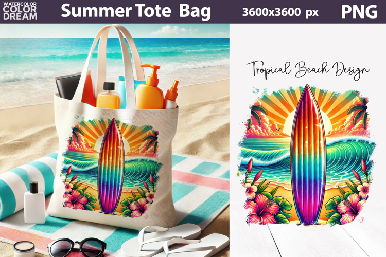 Tote Bag Summer Sublimation Tropical Summer Background Mug Coaster Keychain Tumbler T Shirt Poster Colorful Marine Life Summer Illustration Summer Tropical Beach Sublimation Summer Beach Coastal Bright Seaside Tropical Floral Beach Vacation Travel Ocean Summer Tropical Floral Sublimation Rainbow Surfboard Sunset Tote Bag Sublimation