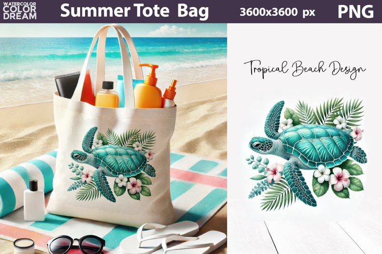 Botanical Sea Turtle Tote Bag Sublimation | Tropical Floral Beach Design