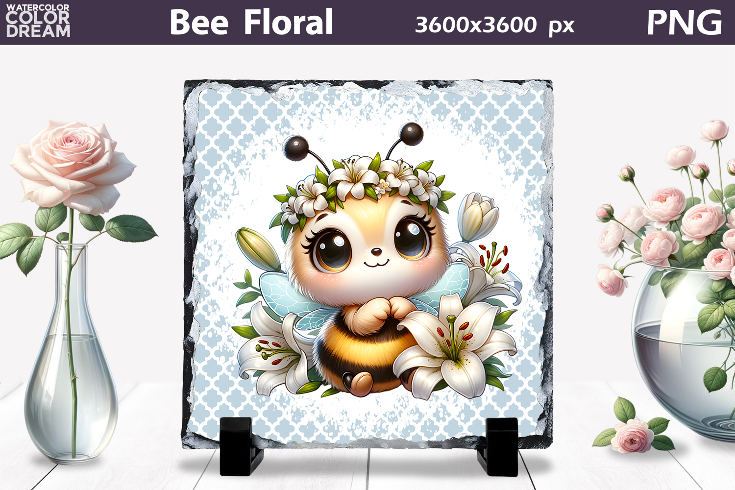 Bee Floral Slate Design | Cute Animal Sublimation Design example image 1