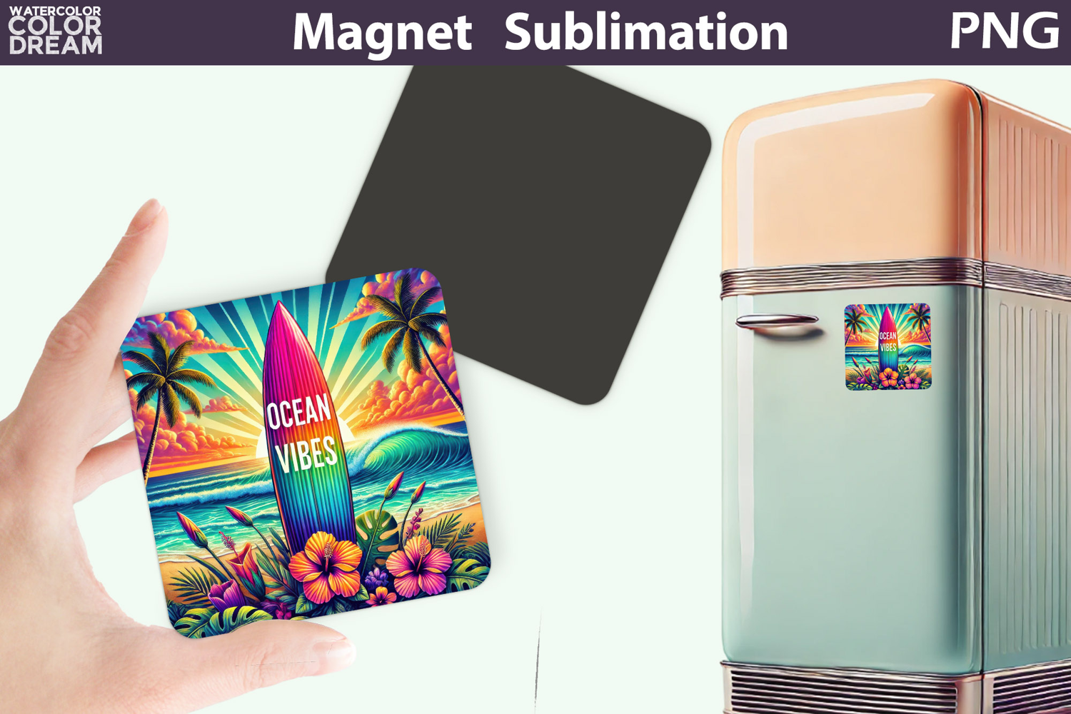 Ocean Vibes Surf Magnet Art | Summer Sublimation example image 1
