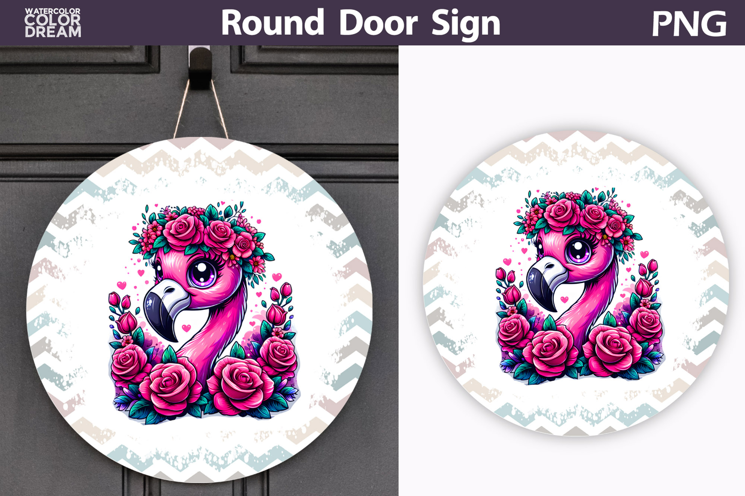 Flamingo Nursery Animal Door Decor Pink Rose Bouquet Design Whimsical Kids Room Wall Art Cottage Style Floral Wreath Door Sign Nursery Decor Wall Art Kids Room Gift Sweet Safari Nursery Theme Adorable Jungle Character Graphic Baby Shower Home Decor Flamingo Floral Door Sign Round Sublimation Png