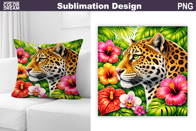 Leopard Profile Tropical PNG | Jungle Floral Sublimation example image 1