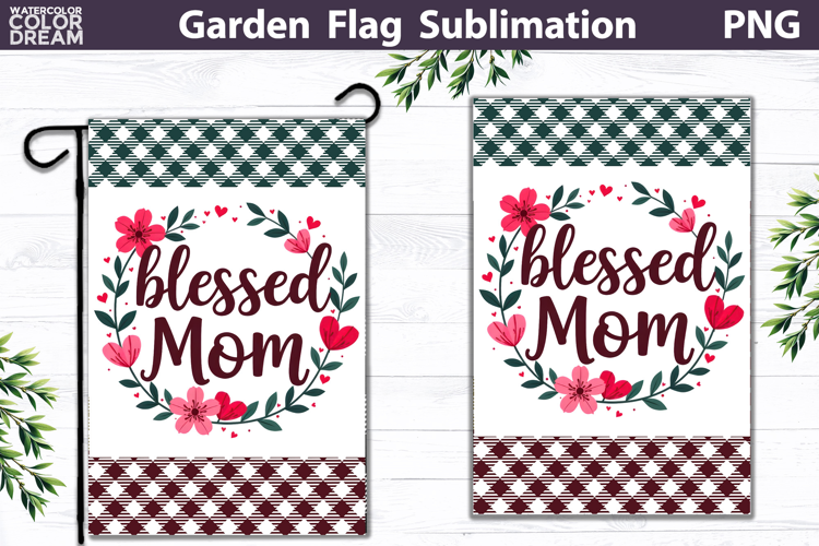Blessed Mom Garden Flag | Floral Mother’s Day Sublimation example image 1