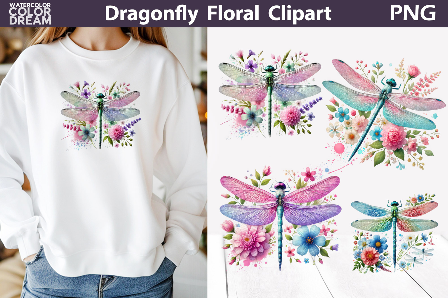 Similar Design Products to Dragonfly Floral Clipart | Pastel Insect Sublimation PNG