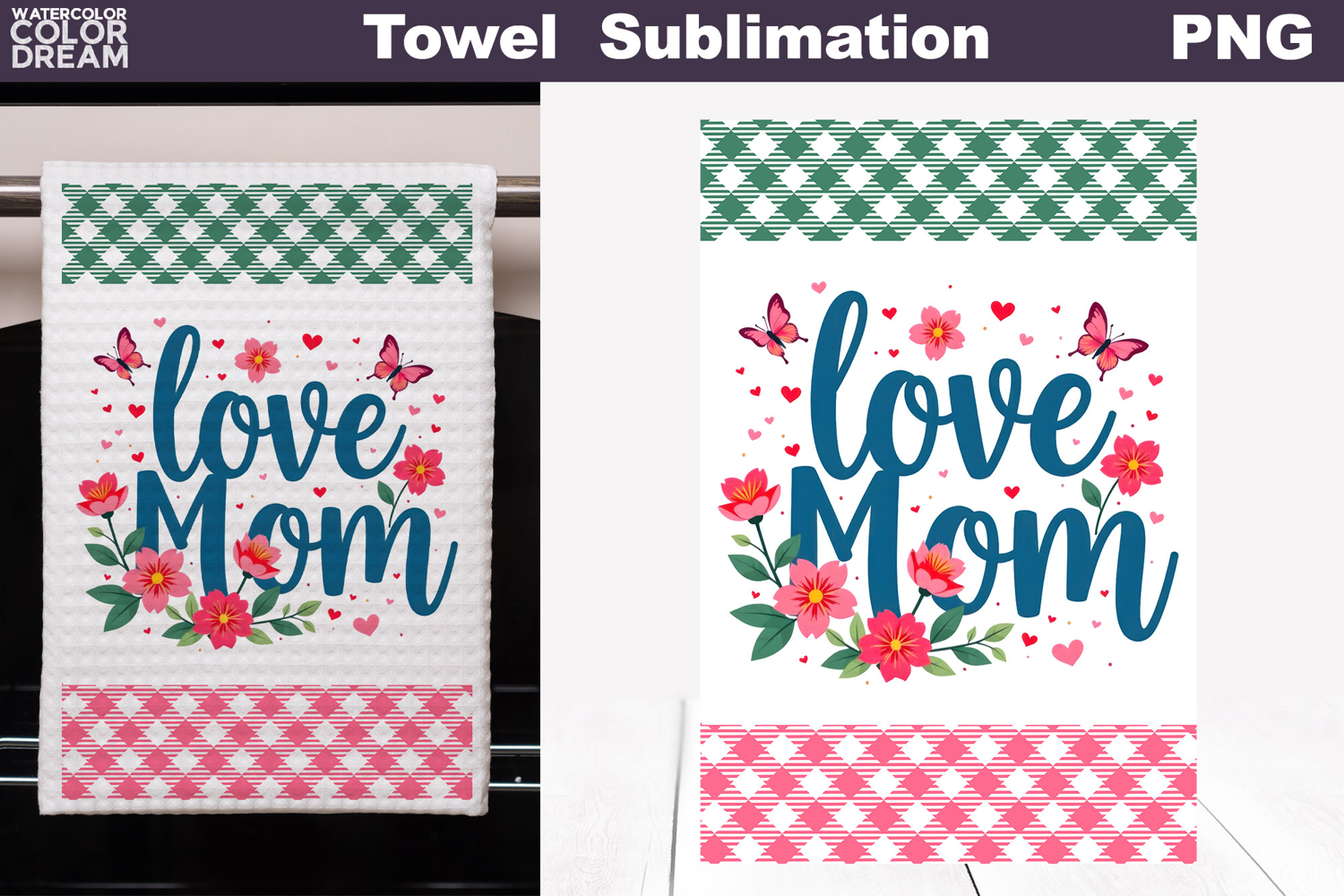 Love Mom Floral Kitchen Towel | Mother Gift Print Sublimation