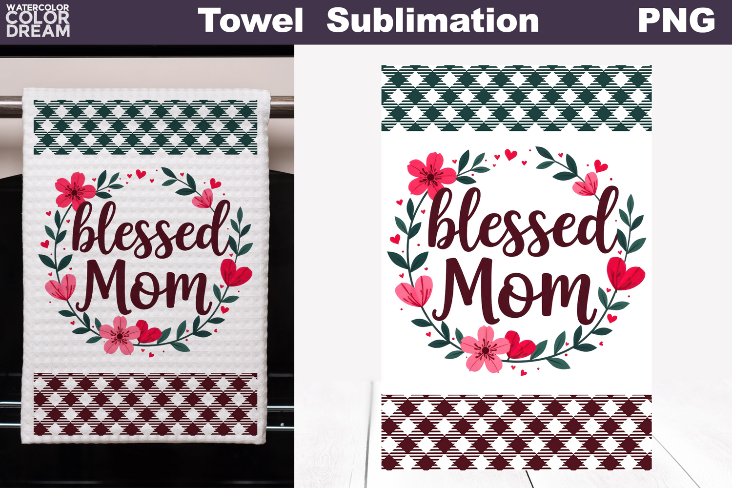 Blessed Mom Floral Kitchen Towel | Mother Gift Print Sublimation
