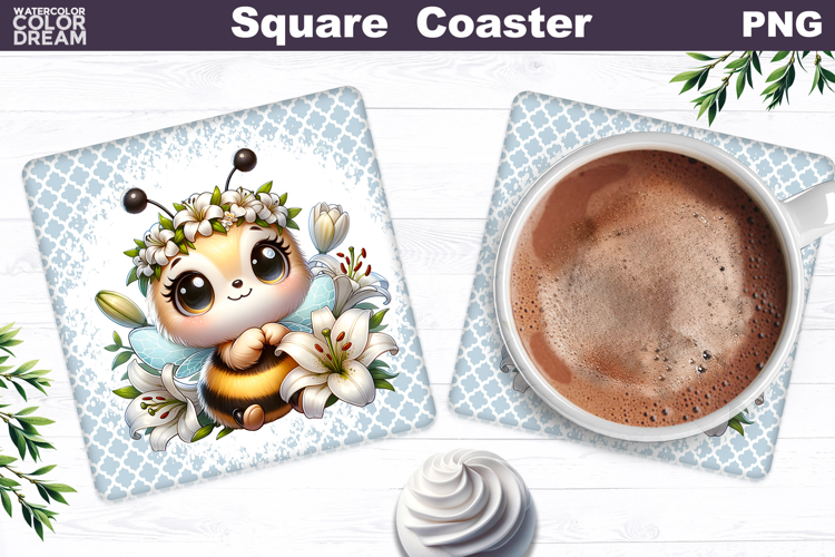 Bee Square Coaster Coaster Magnet Keychain Card Tag Print Floral Animal Square Coaster Spring Garden Blossom Cartoon Sublimation Golden Bee Flowers Sublimation Whimsical Animal Floral Square Coaster White Lily Bee Square Coaster Bumblebee Cream Floral Cute Bumblebee Blossom
