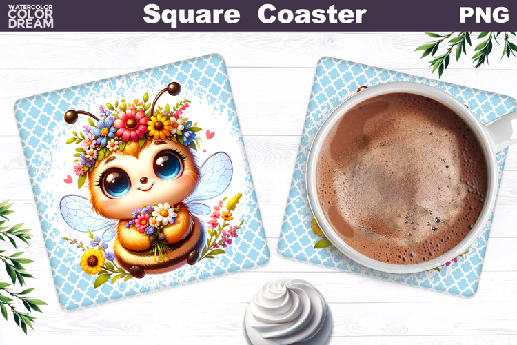 Bee Square Coaster Coaster Magnet Keychain Card Tag Print Floral Animal Square Coaster Spring Garden Blossom Cartoon Sublimation Golden Bee Flowers Sublimation Whimsical Animal Floral Square Coaster Cute Bumblebee Blossom Yellow Pink Daisy Bee Square Coaster Bumblebee Wildflowers