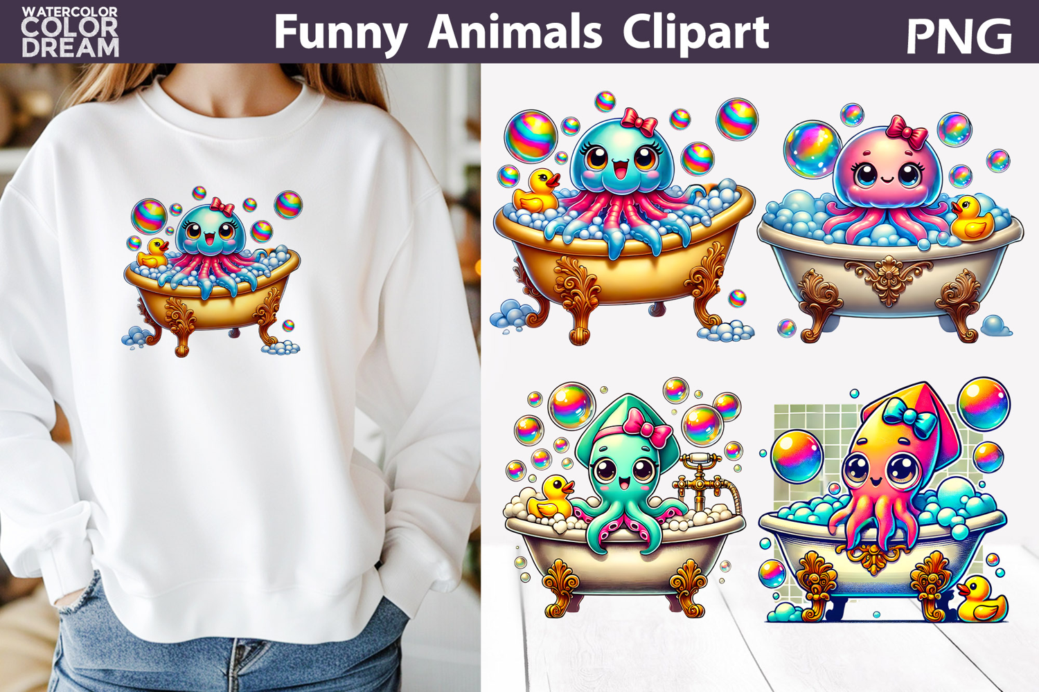 Similar Design Products to Pink Jellyfish Rainbow Squid Clipart | Golden Bubble Bath