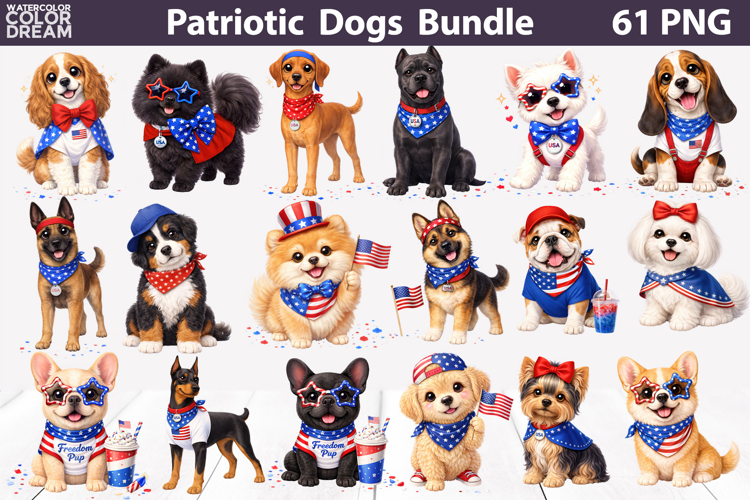 Patriotic Dogs Clipart Bundle | 4th of July PNG