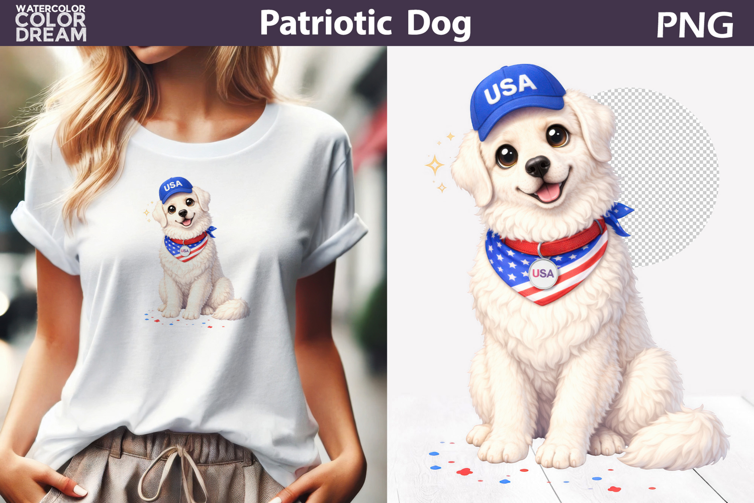 Patriotic Dog Clipart | 4th of July Great Pyrenees