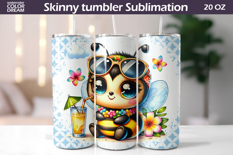 Summer Sunglasses Bee Tumbler Wrap | Tropical Sublimation example image 1