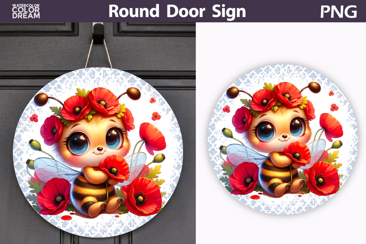Door Sign Porch Decor Wall Art Kitchen Sign Farmh Cute Bee Round Door Sign Png Spring Floral Welcome Porch Decor Design Adorable Bee Nursery Wall Art Printable Pastel Cottage Home Decor Door Hanger Baby Room Spring Wall Decoration Graphic Adorable Insect Floral Wreath Animal Spring Porch Hanging Sign Bee Floral Round Wood Sign Sublimation Design Bee Red Poppy Flower Spring Sign
