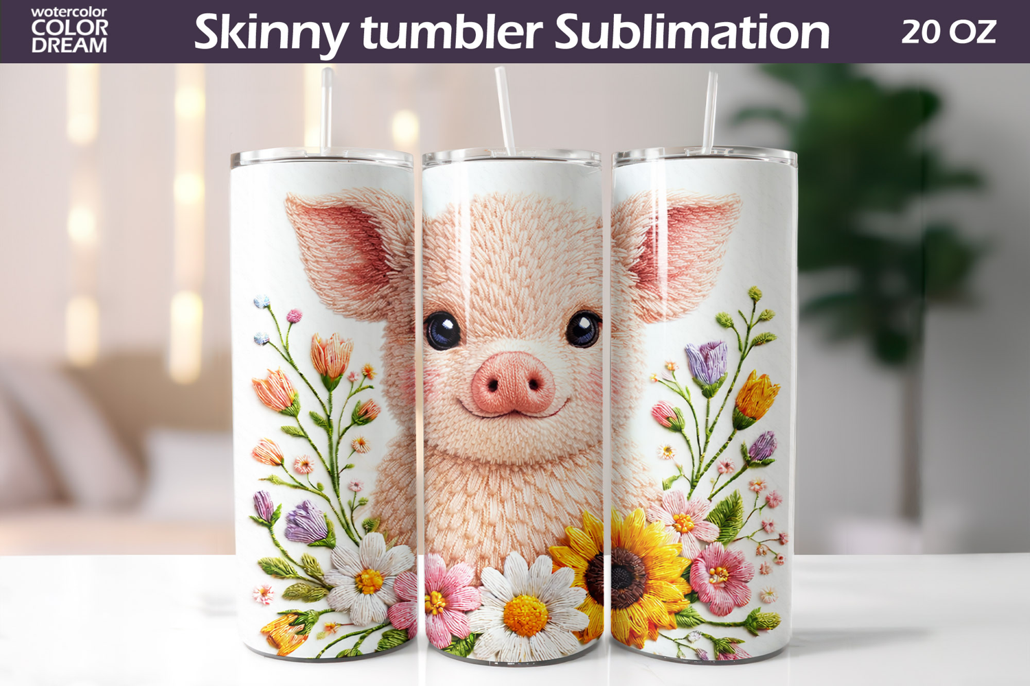Easter Pig Tumbler Wrap | Floral Tumbler Sublimation