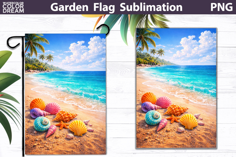 Seashell Beach Flag | Summer Coastal Sublimation example image 1
