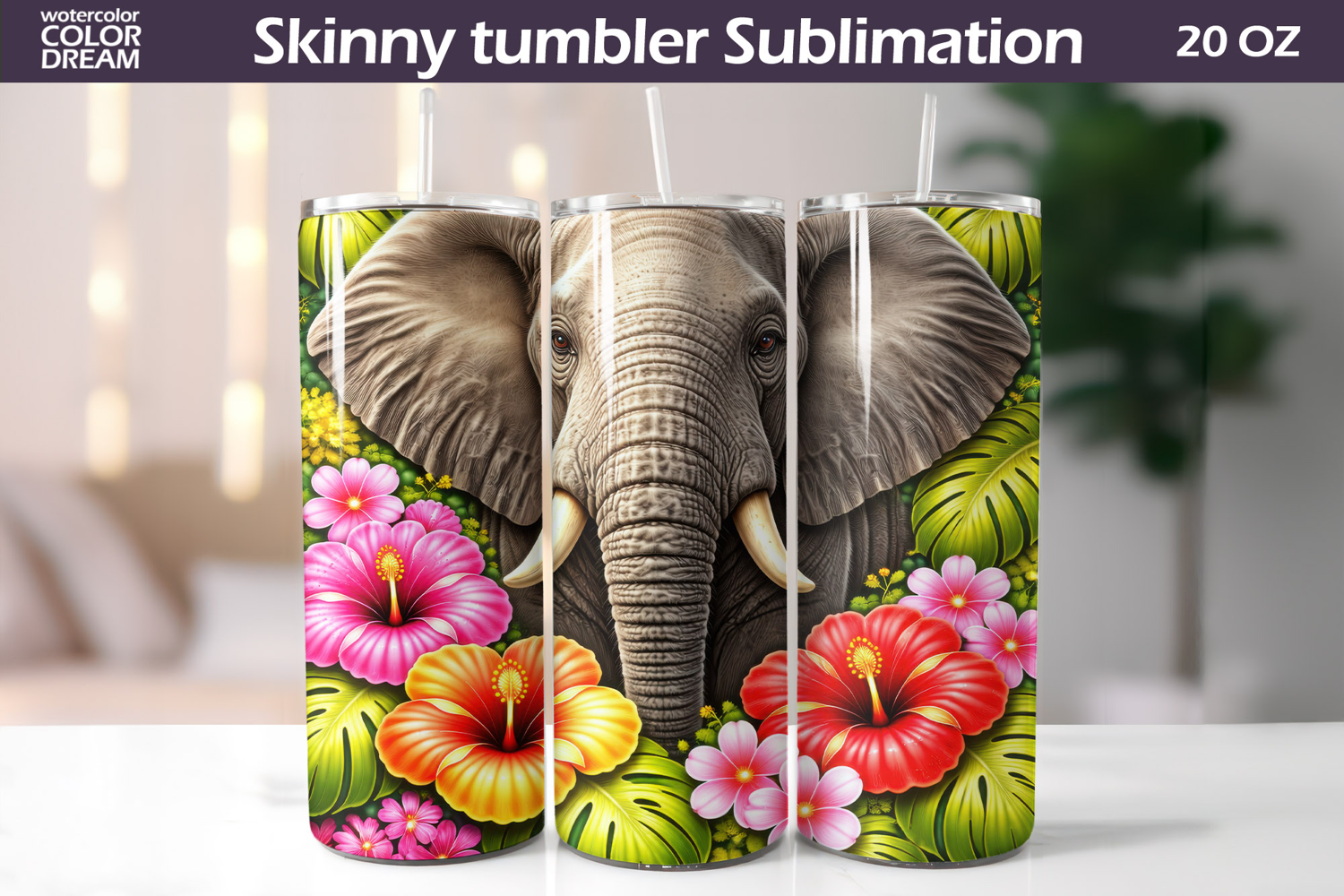 Elephant Tumbler Wrap | Tropical Floral Sublimation example image 1