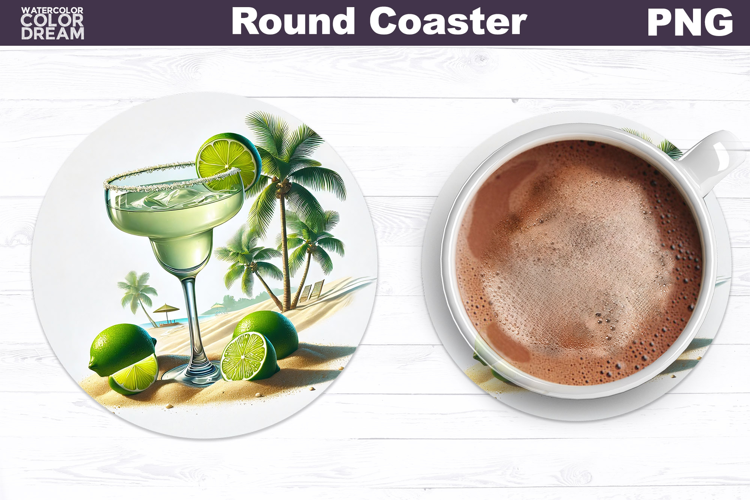 Tropical Margarita Beach Coaster | Summer Cocktail Sublimati example image 1