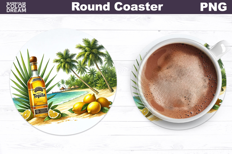 Tequila Beach Coaster Design | Tropical Drink Sublimation example image 1