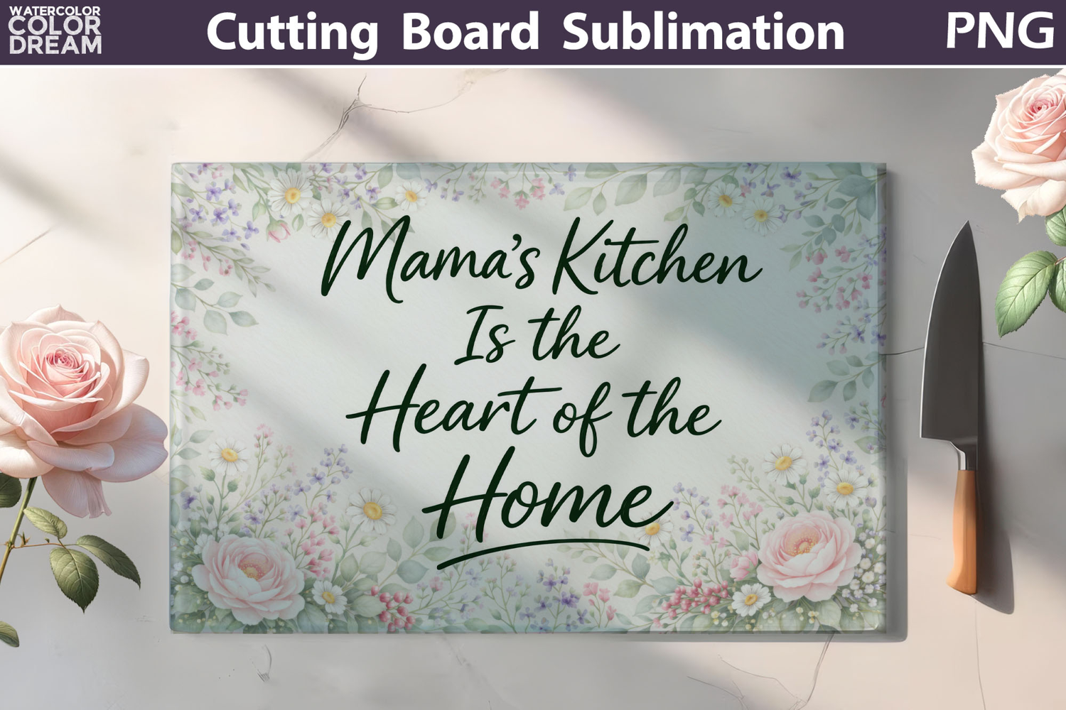 Mama’s Kitchen Cutting Board | Floral Kitchen Sublimation