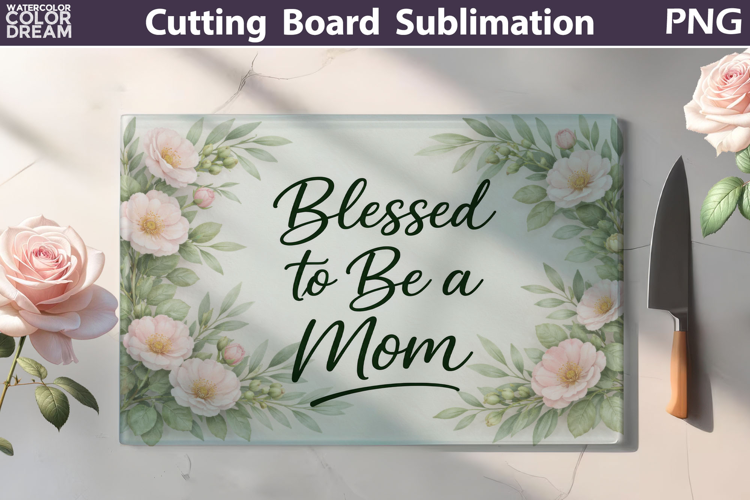 Blessed to Be a Mom Cutting Board | Floral Sublimation example image 1