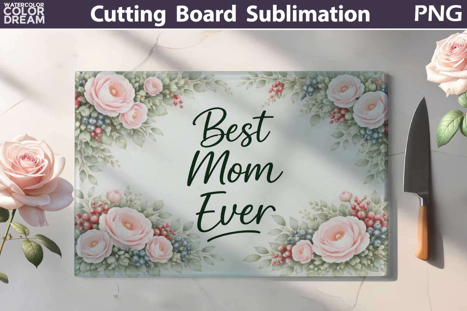 Best Mom Ever Cutting Board | Floral Kitchen Sublimation example image 1