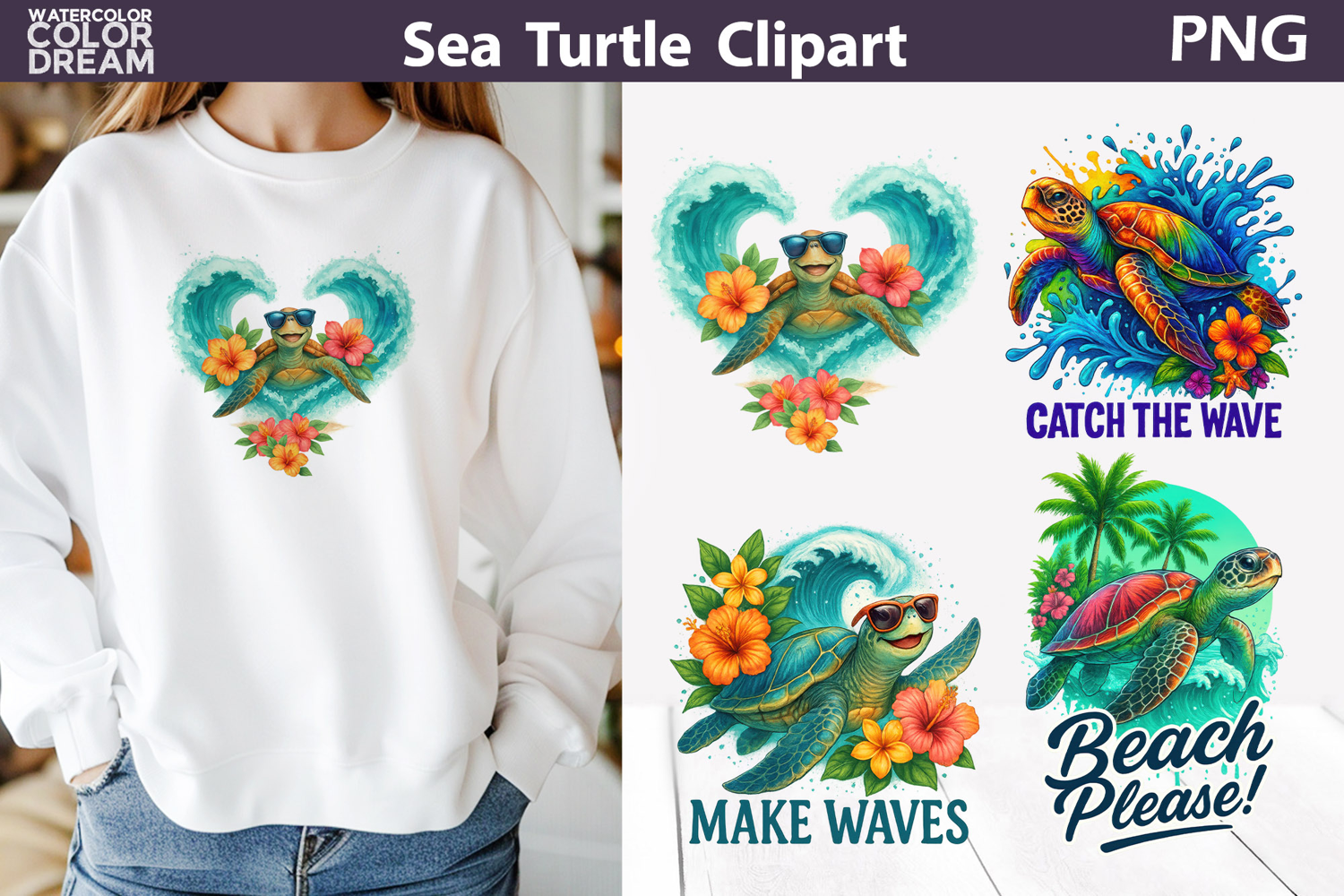 Sea Turtle Tropical Clipart | Beach Shirt Sublimation